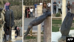 Дональд Рамсфелд: При виде захватывающих сцен на улицах Багдада, где ликующие толпы поют и танцуют, где иракцы, сидя на американских танках, валят с постамента памятник Саддаму Хусейну, невольно вспоминаются сцены падения Берлинской стены и железного занавеса. Мы являемся свидетелями исторических событий, которым суждено изменить облик страны, судьбу народа, а, возможно, и будущее всего региона.