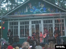 Александр Липницкий: Я начну с предыстории. Существует полулегендарный факт приезда еще мало сформировавшейся московской группы «Машина времени» в начале 70-х годов на Николину Гору, и такой мифологический концерт, который практически никто не помнит, и сама «Машина времени» нашла себя утром где-то в оврагах Николиной Горы. В общем, это первый факт столкновения рок-н-ролла и Николиной Горы. Потом существует факт - в 1981 году концерт группы «Аквариум» практически такой же, в боевом составе на этой самой веранде, где сегодня проходит концерт, где было около 10 зрителей, из которых восемь ушли в самом начале. Вот так тогда местные жители относились к рок-музыке. Но двое помнят, что концерт все-таки состоялся. Больше помнят игру «Аквариума» против местной сборной по футболу Николиной Горы, которую «Аквариум», возглавляемый мною, как играющим тренером, выиграл у местных корифеев. Собственно, потом уже пошли концерты группы «Звуки Му» здесь регулярные, когда мы с 1983 года здесь стали репетировать. В 1984 - известный рок-фестиваль, разогнанный, собственно, властями, милицией, КГБ, когда должны были играть на этой же веранде «Аквариум», «Кино», «Центр», «Последний шанс», «Звуки Му», но мы были согнаны с этой веранды силовыми методами на наш участок, где теперь репетирует "Upstairs". И только после конца коммунистической эры рок-концерты здесь стали проходить более-менее регулярно, а именно вот этот фестиваль на моей памяти третий. То есть когда съезжаются в совершенно свободном режиме те группы, которые хотят поиграть друг с другом и на воздухе, на хорошем звуке, никто их не ограничивает в движениях. И каждый раз это разные, как правило, составы. Но "Upstairs" играет, например, второй раз. "Blast", группа, которую мы ждем, известные рок-н-ролльщики, состоящие наполовину из иностранцев, но живущие в Москве и тоже имеющие родственные связи среди никологорцев, будут играть позже и примут участие в нашей передаче. Вот, собственно, предыстория вопроса.