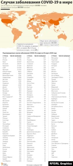 Промежуточная статистика пандемии коронавируса на 23 часа 50 минут по московскому времени, четверг, 19 марта