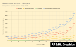 Эпидемия в России в значительной степени локализована в Москве и Московской области – вместе это порядка двух третей всех подтвержденных случаев. В последние дни в Москве темпы распространения даже выросли – но власти говорят, что это связано с ростом числа тестов – это позволяет установить больше случаев инфекции, которые раньше оставались незамеченными – и тем лучше контролировать ход эпидемии. В частности, по данным московских властей, за неделю число установленных случаев с бессимптомным течением болезни выросло с 40 до 60 процентов.