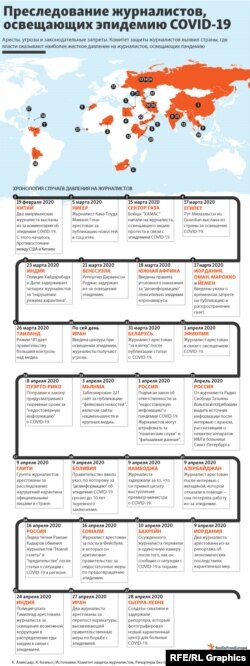 Во многих странах мира журналисты, освещающие эпидемию COVID-19, подвергаются преследованию властей. Россия - не исключение.